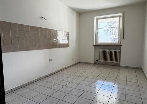 Der Küchenraum ist leer, alle Anschlüsse sind vorhanden und bieten dem Mieter die Möglichkeit, eine Küche nach eigenen Vorstellungen einzubauen.