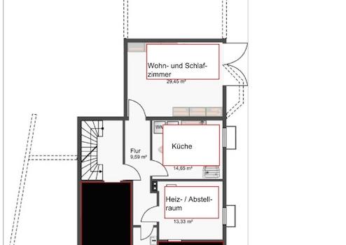 Es handelt sich um eine möblierte 1-Zimmer-Souterrain-Wohnung in einem Wohnhaus mit zwei weiteren Wohnungen, die von dem Vermieter genutzt werden.