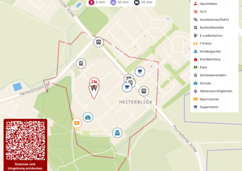 • Nächstgelegene Straßenbahn-/Bushaltestelle in etwa 300 Meter (4 min Fußweg)