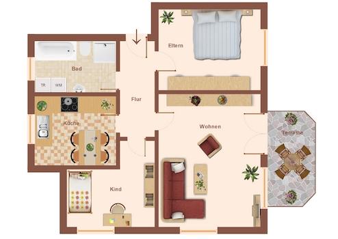 Auch bei Grundrisse, die selten Maßstabsgetreu sind, kann es bei den eingezeichneten Räumen zu Abweichungen kommen.