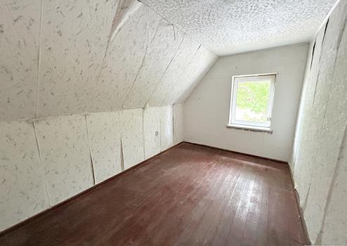 Im Dachgeschoss befinden sich zwei weitere Zimmer sowie ein Flur. Die Räume lassen sich flexibel als Kinder-, Gäste- oder Arbeitszimmer nutzen.