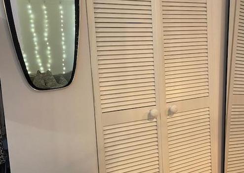Das Wohn-/Schlafzimmer ist mit einer gemütlichen Schlafnische und einem integrierten begehbaren Schrank ausgestattet.