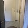 Im Flur und Bad ist ebenfalls ein eleganter grauer Fließenboden verlegt.