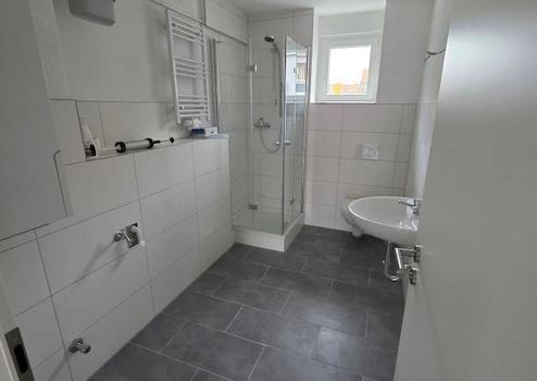 * Gefliestes Tageslichtbad mit moderner Dusche