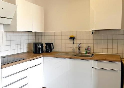 ### Please note the availability date! Bitte das Verfügbarkeitsdatum beachten! ### kleine Zweizimmer-Dachgeschoss-Wohnung ohne Schrägen in der Heimstraße; neuer Vinyl-Fußboden, offene Küche zum Wohnzimmer (vom Vormieter kann die abgebildete neue Einbauküche für 1.800,00 Euro übernommen werden); neues Bad mit Dusche und Fenster, Abstellraum, Keller, Nebenkostenvorauszahlung nach Personenzahl 150,00 bis 170,00 Euro (inklusive Heizung und Hausmeisterdiensten); Pflichtangaben zum Energieausweis: Energieausweis gültig bis: 02.02.2028; Baujahr Gebäude: 1998; Energieausweis: nach Verbrauch; Energieverbrauch: 69.0 kWh/(m²a); Energieeffizienzklasse: B; Primärer Energieträger: Fern-/Nahwärme