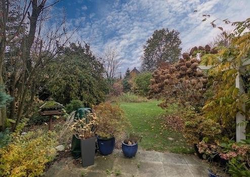 Das Grundstück lädt zum Entspannen, Gärtnern oder zu geselligen Stunden im Freien ein.
