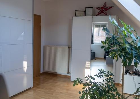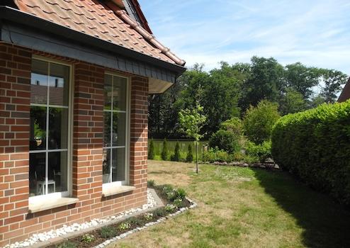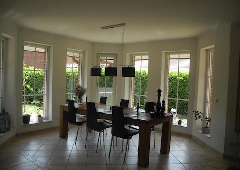 Wir vermieten zum 01.04.2026 unser alleinstehendes Einfamilienhaus mit Blick auf ein großes Gewässer im Außenbereich von Dülmen-Buldern. Es ist ein lichtdurchflutetes Niedrigenergiehaus mit 3 Schlafräumen und Badezimmer im Obergeschoss und einem 55 m² großem Wohnzimmer, Küche, Gäste-WC und Abstellraum im Erdgeschoss. Die angrenzende Garage ist aus der Küche direkt zu erreichen, sodass Einkäufe bei jedem Wetter trockenen Fußes reingebracht werden können. Das Wohnzimmer ist mit einem Specksteinofen ausgestattet, sodass auch an Wintertagen ein gemütlicher Abend garantiert ist. Die Terrasse ist sowohl aus der Küche, als auch aus dem Wohnzimmer direkt erreichbar, von wo aus man auf einen großen Teich und dahinterliegenden Wald blickt.