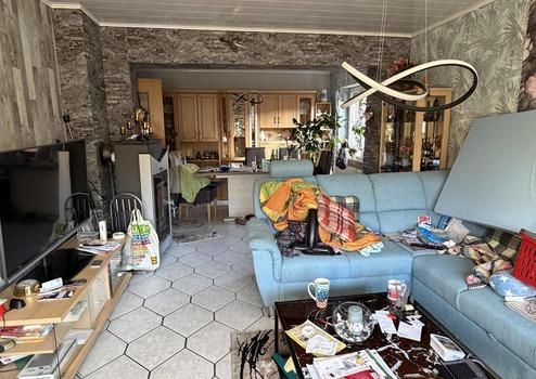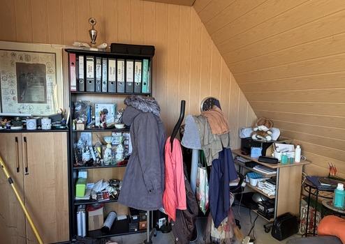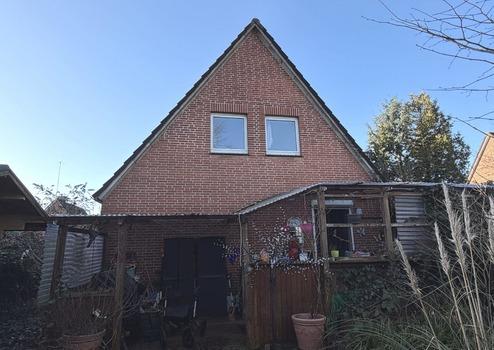 Zum Verkauf steht ein solides Einfamilienhaus. Über den Flur gelangen Sie in das große, lichtdurchflutete Wohn-/Esszimmer, in die Küche sowie in ein Tageslichtbad (ebenerdige Dusche, Waschtisch, WC). Eine Holztreppe führt vom Eingangsbereich in das ausgebaute Dachgeschoss. In diesem sind ein Schlafzimmer und ein mögliches Kinderzimmer/Büro vorhanden. Das Objekt wird über eine Gaszentralheizung (Bj. 2023) beheizt. Ferner steht im Wohnbereich ein Kaminofen bereit, welcher für zusätzliche Wärme sorgt. Die Fenster sind überwiegend mit Außenrollläden (mechanisch u. elektrisch) ausgestattet. Zum Haus gehört ein kleiner Teilkeller, welcher zusätzliche Abstell- und Lagermöglichkeiten bietet. Die Immobilie ist von einem Garten mit lebenden Hecken und Sträuchern umgeben. Dieser ist leider aktuell verwildert und bietet viel Potenzial für die individuelle Gestaltung.