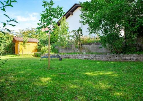 - LIEBEVOLL ANGELEGTER GARTEN MIT AUTOMATISCHER BEREGNUNGSANLAGE UND STABILER HANGABSTÜTZUNG