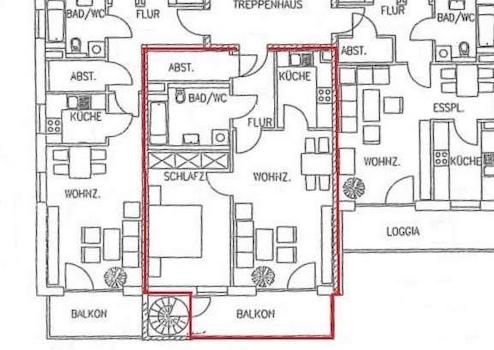 Durch die Lage der Wohnungen im Objekt, besteht grundsätzlich die Möglichkeit die beiden Einheiten, mittels eines Durchbruchs, zusammenzuführen (siehe Beispiel Grundriss).