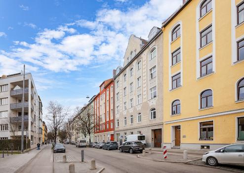 81675 München, Kirchenstraße 77, 19 Wohnungen im Mehrfamilienhaus mit einer markanten Jugendstil-Fassade, welche die historische Atmosphäre des Viertels prägt. Die Straße selbst ist eine der ältesten in Haidhausen, eine Mischung aus traditionellem Flair und modernem Hotspot.