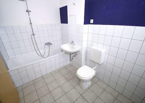 Das Schlafzimmer ist kompakt und eignet sich perfekt als Rückzugsort. Das Badezimmer ist mit einer Wanne ausgestattet. Die Wohnräume sind mit Laminatboden ausgestattet, der Kochbereich und das Bad sind gefliest.