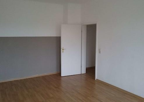 Ebenfalls im vierten Obergeschoss befindet sich die zweite Wohnung mit einer Wohnfläche von etwa 49,04 m². Der kompakte Grundriss eignet sich ideal für Singles oder Paare. Vom kleinen Flur aus sind Badezimmer sowie Wohn- und Schlafzimmer direkt zugänglich, während die Küche praktisch an das Wohnzimmer angrenzt. Große Fenster sorgen für viel Tageslicht und eine freundliche Atmosphäre. Diese Wohnung ist seit dem 01.02.2021 unbefristet vermietet.