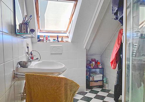 Gemütliche 2 Zimmer Dachgeschoßwohnung mit offener Küche, Badezimmer mit Dusche und WC, großen Abstellraum sowie einer Gasetagenheizung