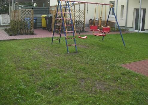 -Komplette Neugestaltung der Außenanlagen, Innenhof mit Spielfläche, großer Rasenfläche, Sitzfläche, moderner Wegepflasterung, neuem Müllgefäßebereich und überdachtem Abstellplatz für Fahrräder,