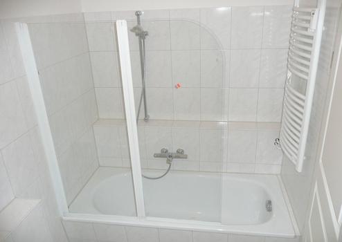 -Bäder mit Badewanne und Echtglas- Brauseabtrennung, Thermostat- Wannenarmatur, Wand-WC, neuen hochwertigen Wand- und Bodenfliesen, UP- Waschmaschinengarnitur