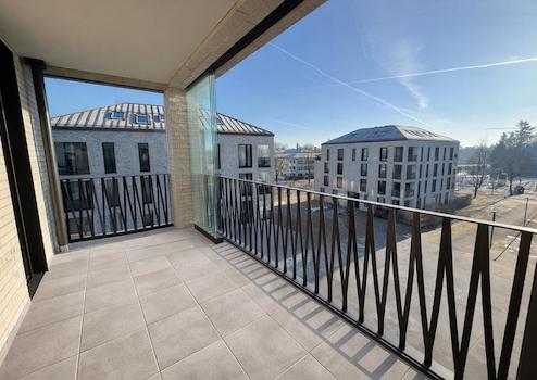 Die südöstlich ausgerichtete Loggia mit verschiebbaren Glaselementen erweitert den Wohnraum und bietet einen beeindruckenden Ausblick.