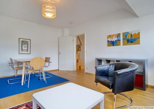 Attractive, cosy maisonette in an excellent, upmarket residential area, only five minutes’ walk from the Grafenberger Wald woods. International occupants welcome. Enjoy the view and the surrounding environment, which is peaceful and quiet at all times of day.