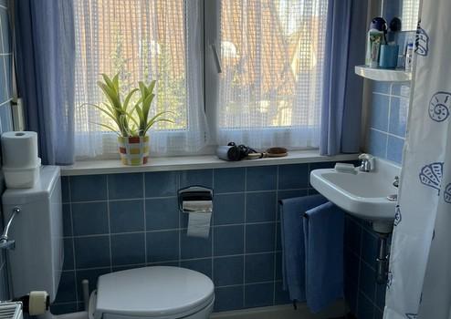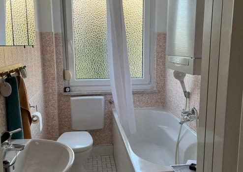 Wände: überwiegend (Raufaser-) Tapete, Fliesen im Bad