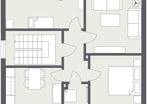 - Jede Wohnung ist auf einer Etage mit separaten Räumen untergebracht und über das Treppenhaus erreichbar.
