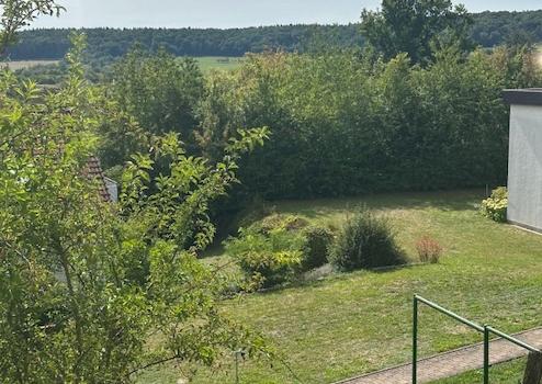 Zum Verkauf steht ein 378 m² großes Grundstück mit einem kleinen Haus in attraktiver Südausrichtung und schönem Fernblick