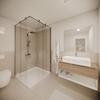 In den Wohnräumen kommen hochwertige Vinylböden zum Einsatz, während Bäder und Abstellräume mit modernen Fliesen ausgestattet sind. Die Bäder überzeugen durch eine Walk-in-Dusche, Markenarmaturen von Hansgrohe, Geberit-WC sowie stilvolle Badmöbel.