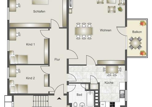 Hier erwartet Sie eine helle und freundliche 4-Zimmerwohnung mit ca. 127 m² Wfl. in einem ruhigen Wohngebiet. Das Gebäude hat pro Eingang 8 Einheiten.