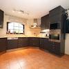 Linker Hand befindet sich zunächst der praktische Hauswirtschaftsraum. Mit genügend Platz für Waschmaschine, Trockner und zusätzliche Haushaltsgeräte erfüllt er alle Anforderungen an den Alltag. Dieser Raum öffnet sich harmonisch zur modernen, schwarzen Einbauküche, die mit ihren ca. 14 m² großzügigen Stauraum und funktionaler Arbeitsfläche begeistert. Die hochwertige Gestaltung fügt sich perfekt in das gehobene Ambiente des Hauses ein.