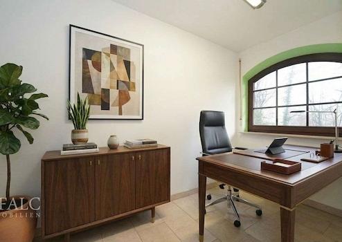 Auf dieser Etage befinden sich außerdem ein stilvolles Gäste-WC sowie ein Arbeitszimmer, das sich ebenso gut als Gästezimmer nutzen lässt.