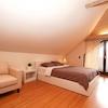 Zurück im Flur gelangen Sie in einen großzügigen Raum, der sich ideal als Lese- oder Ruheecke eignet. Auch dieser Bereich verfügt über einen wunderschönen Kamin und bietet Zugang zu einer zweiten Loggia, die nach Süden ausgerichtet ist - ein lichtdurchfluteter Lieblingsplatz zu jeder Tageszeit. Die Loggia ist außerdem über ein weiteres Schlafzimmer erreichbar, das zusätzlich mit einer eigenen Ankleide sowie einem Bad-en-suite ausgestattet ist. Dieses Badezimmer überzeugt mit Badewanne, WC, zwei Waschbecken und einem Fenster - ein komfortabler Rückzugsort im privaten Bereich.