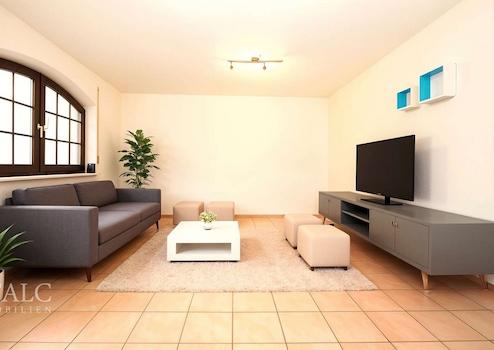Eine Einliegerwohnung im Untergeschoss eignet sich mit seinen 42 m² Wohnfläche perfekt zur Vermietung oder als Gästewohnung. Diese ist aktuell vermietet und erzielt eine Warmmiete von 410,00€.