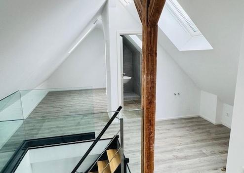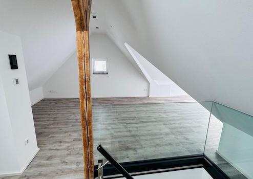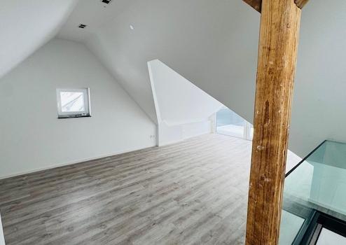 Zur Vermietung steht eine außergewöhnliche 3,5-Zimmer-Maisonettewohnung mit ca. 134,54 m² Wohnfläche, die nach umfassender Sanierung erstmals bezogen wird. Das Gebäude stammt ursprünglich aus dem Baujahr 1960, die Wohnung selbst präsentiert sich jedoch technisch und optisch auf Neubauniveau.