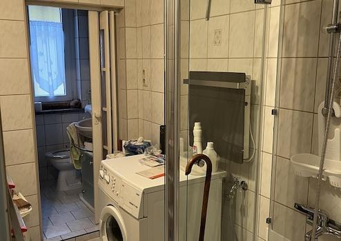 - Dachgeschoss, Wohneinheit 3: Fenster nur einfachverglast, textiler Belag in Kinderzimmer, Wohnzimmer, Schlafzimmer und Küche. WC und Dusche befinden sich eine halbe Treppe unterhalb in Dielung. Gastherme (Baujahr 2022).