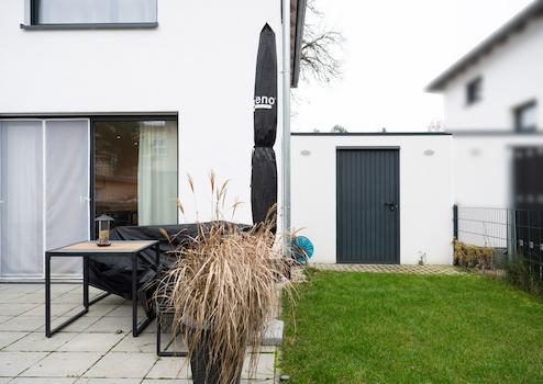 Ein Carport und eine Garage runden das attraktive Angebot ab und bieten ausreichend Stellfläche für Fahrzeuge und zusätzliche Lagermöglichkeiten. Die Installation für eine Wallbox im Carport ist bereits vorbereitet, was das Haus zukunftssicher macht. Ebenso ist für eine elektrische Markise über der sonnigen Terrasse schon eine entsprechende Elektroleitung verlegt.