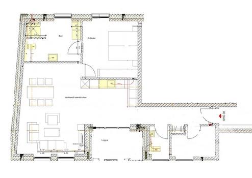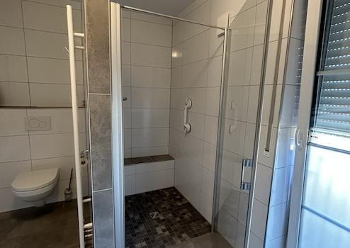 Die Wohnung überzeugt durch eine helle und freundliche Atmosphäre sowie eine durchdachte Raumaufteilung. Herzstück ist die große Wohnküche, die mit einer modernen Einbauküche ausgestattet ist und direkten Zugang zur gemütlichen Loggia bietet. Das geräumige Schlafzimmer verfügt über ein bodentiefes Fenster, das viel Tageslicht hereinlässt und für ein angenehmes Wohngefühl sorgt. Ergänzt wird das Raumangebot durch ein lichtdurchflutetes Büro, das sich ideal als Arbeits- oder Gästezimmer nutzen lässt. Neben einem separaten Gäste-WC steht ein rollstuhlgerechtes Badezimmer mit einer großen, ebenerdigen Dusche zur Verfügung, das zusätzlichen Komfort bietet.