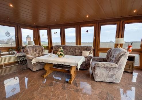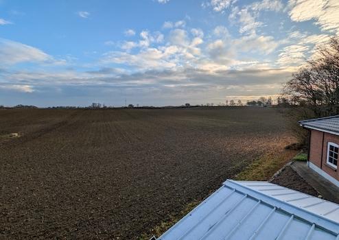 Der Wohnraum liegt im ersten Obergeschoss und bietet dadurch einen herrlichen Weitblick über die umliegenden Felder.