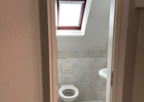 Die schöne , großzügige und helle Dachgeschosswohnung liegt im 1. OG eines Zweifamilienhauses in einer ruhigen Nebenstraße. Im Erdgeschoss des Hauses befindet sich eine weitere kleinere Mietwohnung, welche bereits vermietet ist. Ein ebenfalls im Erdgeschoss befindlicher ehemaliger Schwimmbadbereich wird von dem Vermieter lediglich als Lagerfläche genutzt. Zusammen mit der Wohnung wird ein großzügiger Raum im Keller zum Abstellen und Lagern von Gegenständen vermietet. Der Kellerraum verfügt sogar über ein Fenster, sodass ihn Tageslicht erreicht. Des Weiteren befindet sich im Keller ein Gemeinschaftsraum mit Anschlüssen für Waschmaschine und Trockner für die Mietwohnung.