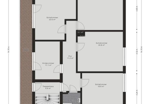 Das Haus erstreckt sich über vier Etagen und verfügt über eine Wohnfläche von ca. 140 m² innerhalb eines 342 m² grossen Grundstücks. Mit 7.5 Zimmern, darunter sechs Schlafzimmer und zwei Badezimmer, bietet diese Immobilie ausreichend Platz für Familien und Gäste. Ein zusätzliches Gäste-WC sorgt für hohen Komfort.
