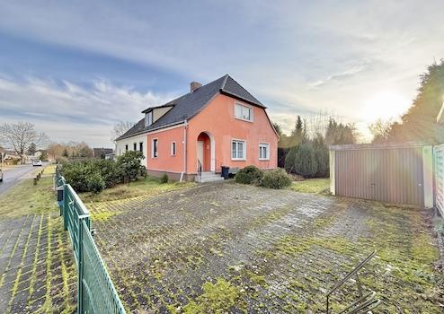 Doppelhaushälfte mit Fertigteilgarage und großem Grundstück