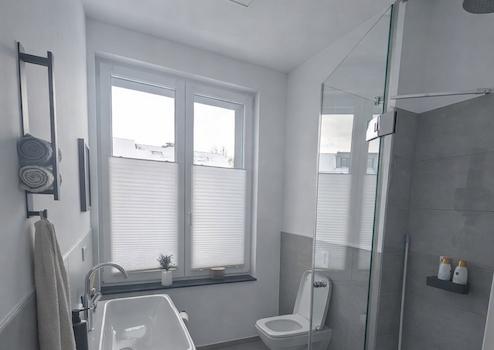 - Hauptbadezimmer mit Dusche und Badewanne