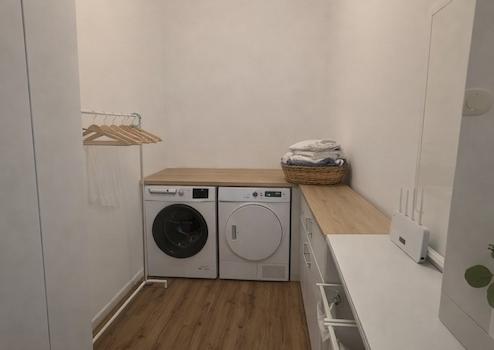 Ein großer Abstellraum mit Anschlussmöglichkeiten für Waschmaschine und Trockner komplettieren diese außergewöhnliche Wohneinheit. Für Ihre Fahrzeuge stehen zwei Stellplätze zur Verfügung.