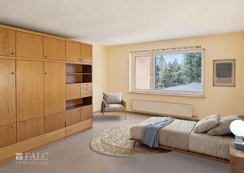 Die Möbel im Wohnzimmer, in der Wohnküche und dem Kinderzimmer, sind digital gestaltet worden. Die Beschaffenheit der Räume ist komplett original belassen.