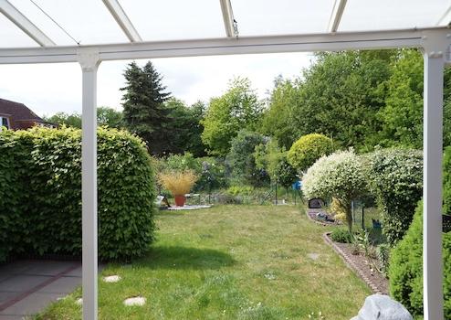 Es besteht aus Erdgeschoss, Dachgeschoss und einen Hobbyraum im Spitzboden. Das Gartengrundstück ist in westlicher Ausrichtung und damit herrlich sonnig. Genießen Sie hier laue Abendstunden auf der Terrasse!