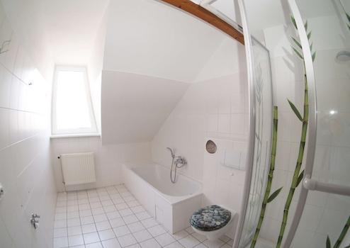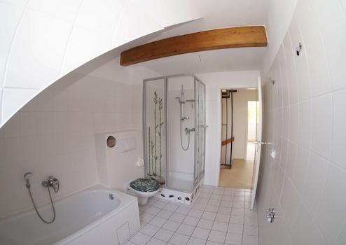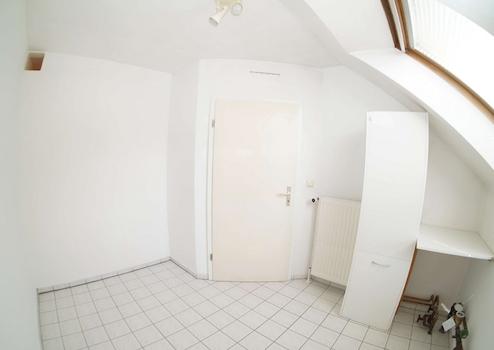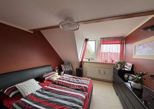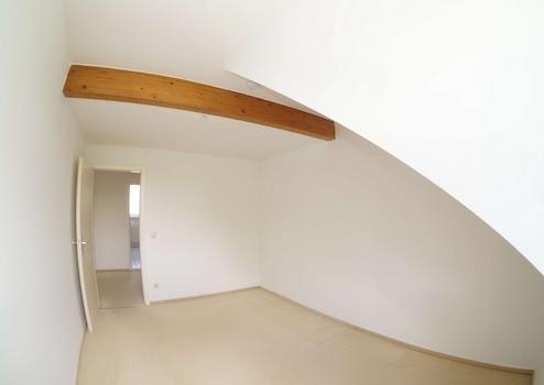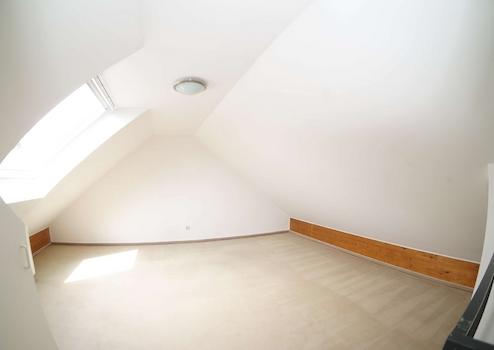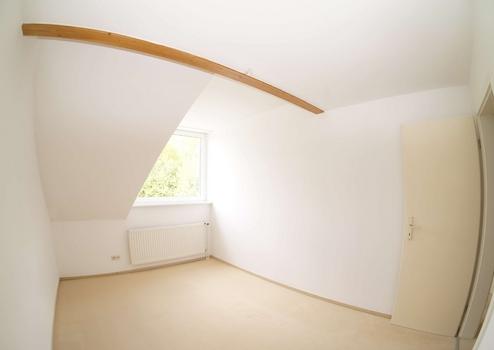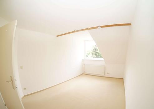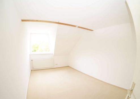 Vom Flur aus führt die Treppe ins Dachgeschoss. Hier finden Sie zwei beinahe gleich große Zimmer sowie das großzügigere Schlafzimmer. Das Bad hat natürlich ein Fenster und bietet neben der Dusche eine Badewanne, Waschbecken und WC.