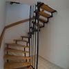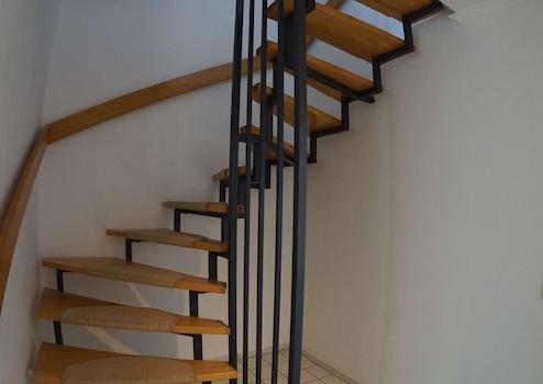 Die Treppe ist eine gestrichene Metallkonstruktion mit Holzstufen.