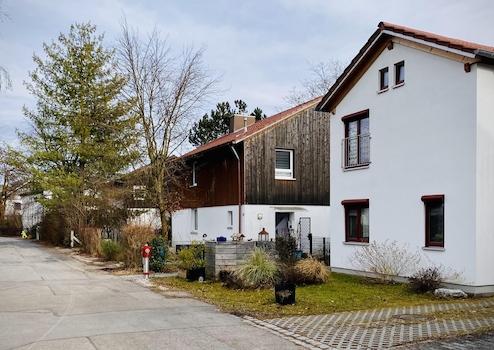 Das Haus liegt am Ende einer ruhigen Sackgasse in ruhiger Nachbarschaft. Hinter dem Garten liegen Felder, an deren Ende, in ca. 150m Entfernung ein Schallschutzzaun die A94 München - Passau verdeckt. Feldkirchen liegt im Münchener Osten und ist gut mit der S2 und der A94 angebunden. Zum Ortskern sind es fußläufig knapp 10 min, zur S-Bahn 15 min. Kindergarten Grundschule, Sportverein und die sehr aktive Volkshochschule sind alle gut zu Fuß oder dem Rad zu erreichen. Weiterführende Schulen sowie mehrere Gymnasien in Riem, Kirchheim, Aschheim und Vaterstetten sind in ca 20 min mit dem ÖPNV erreichbar. Im Sommer lockt der Heimstettener See mit einem gepflegten Naherholungsgebiet. Feldkirchen verfügt über eine gute Infrastruktur sowie ein medizinisches Versorgungszentrum, gemütliche Gasthäuser und ein Bäckerei Café im Dorfzentrum.
