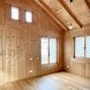 Im Wohnbereich sind Holzfußböden verlegt und die sichtbare Holzbalkendecke schafft eine gemütliche Atmosphäre.