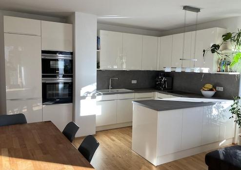 Einbauküche mit Siemens- & Bosch-Geräten (Induktionskochfeld, Dampfgarer, Backofen, 60cm Geschirrspüler)