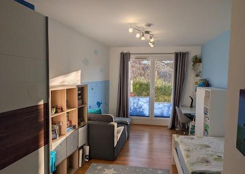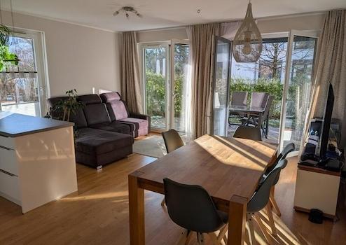 Herzstück der Wohnung ist der großzügige, schön bepflanzte Privatgarten, der direkt an einen Spielplatz und einen Kindergarten in schöner grüner Umgebung grenzt. Die Wohnung überzeugt durch eine moderne Raumaufteilung, helle Wohnräume und hochwertige Ausstattung.