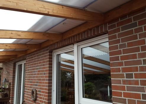 Der Dachüberstand wurde vor knapp 10 Jahren in Kunststoff erneuert. Lässt sich super mit einem Hochdruckreiniger reinigen.